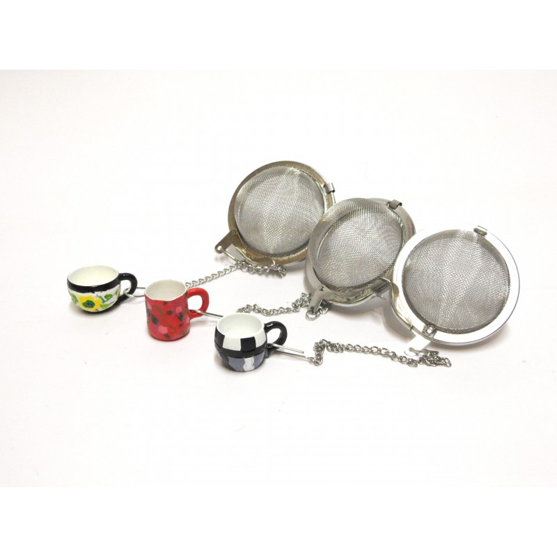 Colino rete in acciaio con un ciondolo a forma di tazzina.