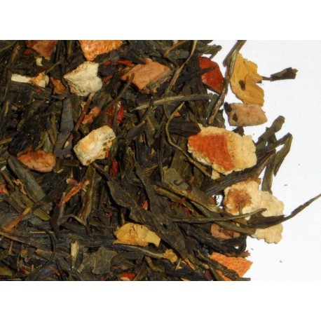 Miscela Natalizia adatta a tutta la famiglia: miscela di tè verde (Cina e Giappone), scorza d'arancio, aromi, ribes rosso, aroma naturale e foglie di fiordaliso, donano a questo tè un profumo dolce e fruttato.